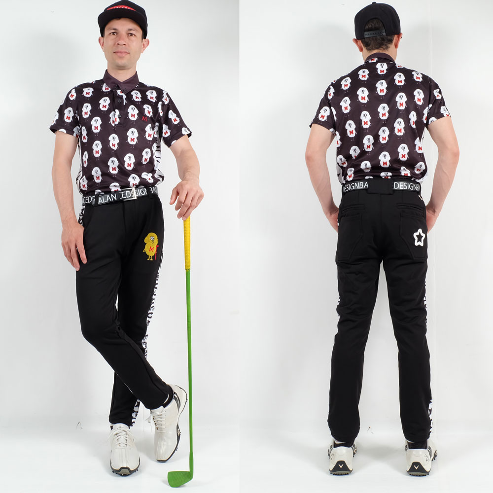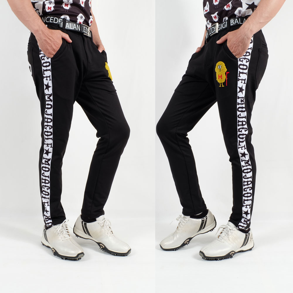 夏秋新作w30〜w44/MOJAスキニースカルパンツ/ワッペン/sukaru パンツ/伸びる素材【美シルエット】【メンズ】【ゴルフウェア】ズボン パンツ 男性 BALANCEDESIGN ゴルフズボン