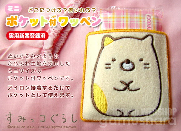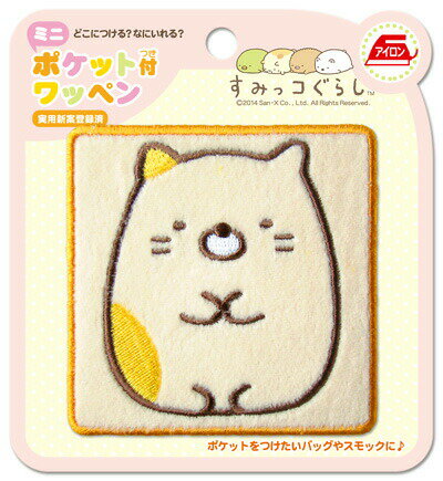 【Sumikko gurashi】すみっコぐらし ねこミニポケット付きワッペンアイロン接着ワッペン