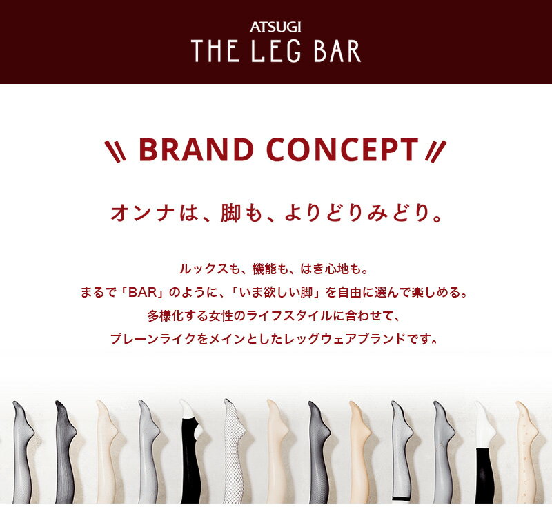 多様化する女性のライフスタイルに合わせて、さりげない柄入りをメインとした、ATSUGI(アツギ)の新ブランド「ATSUGI THE LEG BAR(アツギ ザ・レッグ バー)」。