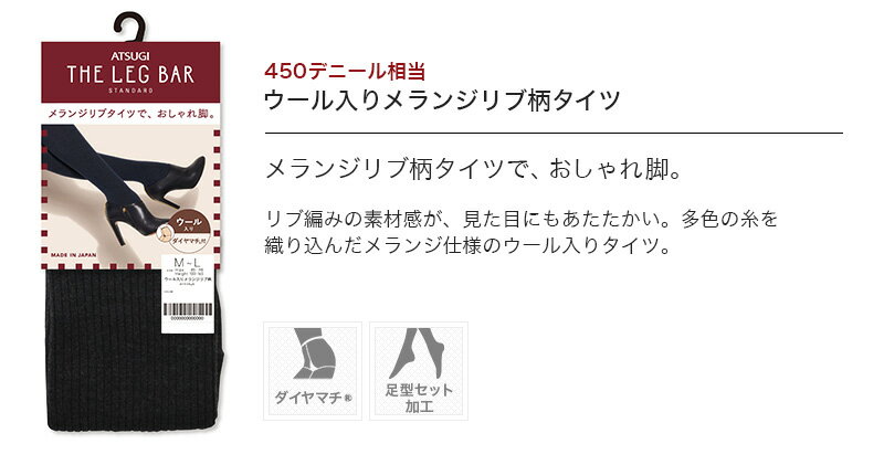 ATSUGI THE LEG BAR 450デニール相当 ウール入りメランジリブ柄タイツ M-L・L-LL (ATSUGI アツギザレッグバー アツギ ザ・レッグ バー 柄タイツ 450D)【在庫限り】