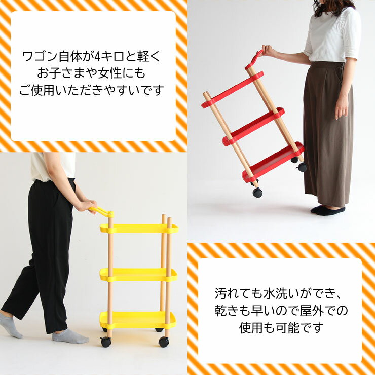 ワゴン自体が軽く、お子さまや女性にもご使用いただきやすいです。